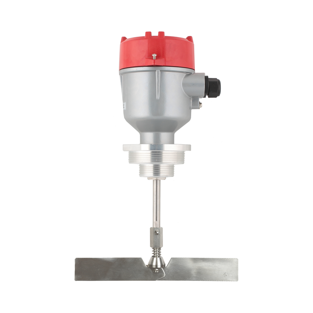 Лопасть датчика приводится в действие двигателем, при контакте вращающейся лопасти с контролируемым продуктом двигатель останавливается. Возникший реактивный момент приводит в действие микровыключатель, который формирует выходной сигнал (регистрируется достижение контролируемого уровня продукта). При снижении уровня продукта и освобождении лопасти двигатель возвращается в исходное положение пружиной и снова включается.