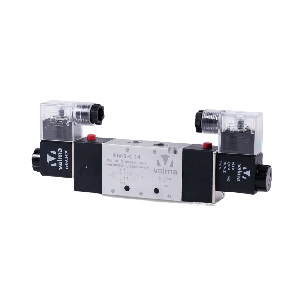 PIV-S-C-12.24DC Клапан пневмораспределительный 5/2 бистабильный, G 1/2''
