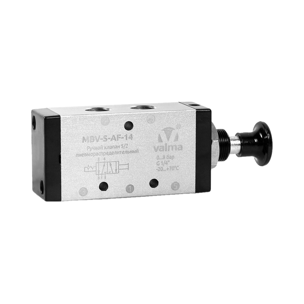 MBV-S-AF-14 Ручной пневмораспределитель (кнопка), 5/2, G1/4", с фиксацией